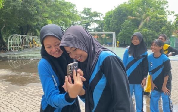 Gambar 3. Praktik pemetaan sampah di area sekolah Gambar 4. Pembuatan video implementasi