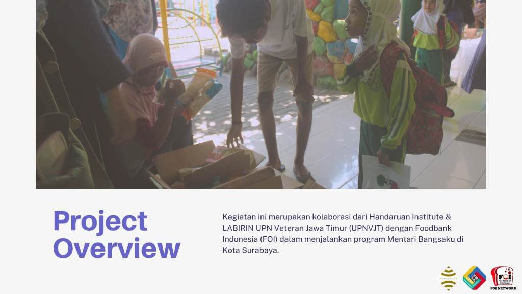 Mentari Bangsaku merupakan project kolaborasi yang digagas oleh Handaruan Institute dan Labirin UPN Veteran Jawa Timur bekerjasama dengan Foodbank of Indonesia. Kegiatan ini diselenggarakan sebagai wujud pastisipasi terhadap empat program SDGs, yaitu tanpa kelaparan (zero hunger), kehidupan sehat dan sejahtera(good health and well-being), kota dan pemukiman yang berkelanjutan (sustainable cities and communities), serta konsumsi dan produksi yang bertanggung jawab(responsible consumption and production).
